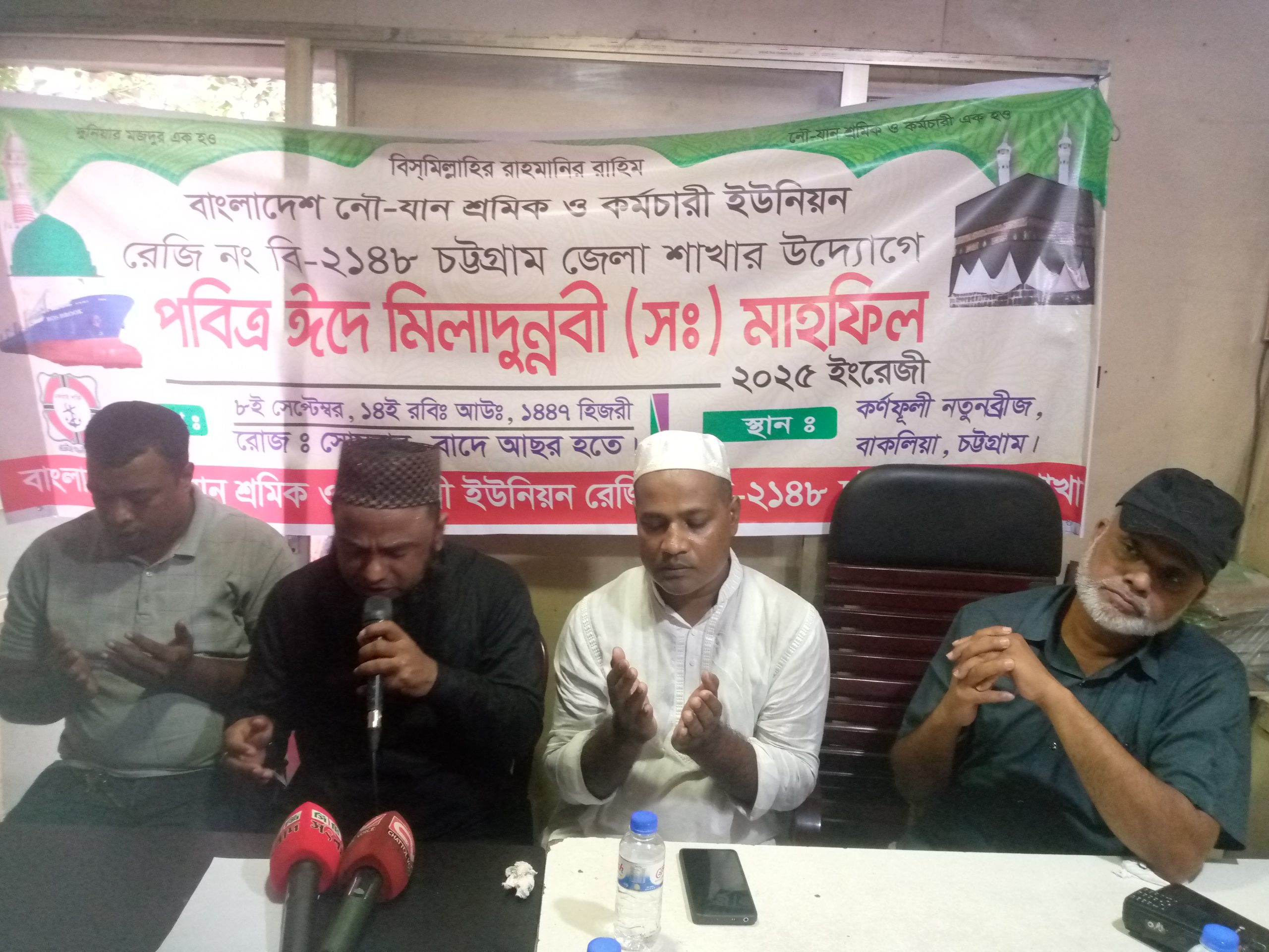 শ্রমিকের গায়ের ঘাম শুকানোর আগেই তাঁর মজুরি দিয়ে দাও- বিশ্ব মানবতার মুক্তির দূত হযরত মুহাম্মদ (স.) এর এই নির্দেশিত উক্তির মাধ্যমে শ্রমিকের অধিকার প্রতিষ্ঠার কথা ফুটে ওঠে। পবিত্র ঈদে মিলাদুন্নবী উদযাপন উপলক্ষে সোমবার (৮আগস্ট) সোমবার বিকাল ৪টায় বাংলাদেশ নৌ-যান শ্রমিক ও কর্মচারী ইউনিয়ন রেজিষ্ট্রেশন নং- বি-২১৪৮ চট্টগ্রাম জেলা শাখার উদ্যোগে নগরীর বাকলিয়া থানাধীন কর্ণফুলী নতুন ব্রীজ এলাকার পুরাতন টোল প্লাজা চত্বরে সংগঠনের কার্যালয়ে সভাপতি প্রখ্যাত শ্রমিক নেতা মোহাম্মদ নুরুল হুদা চৌধুরীর সভাপতিত্বে ও সাধারণ সম্পাদক মো. আলাউদ্দিন মাঝির সঞ্চালনায় মিলাদ ও দোয়া মাহফিল অনুষ্ঠিত হয়।